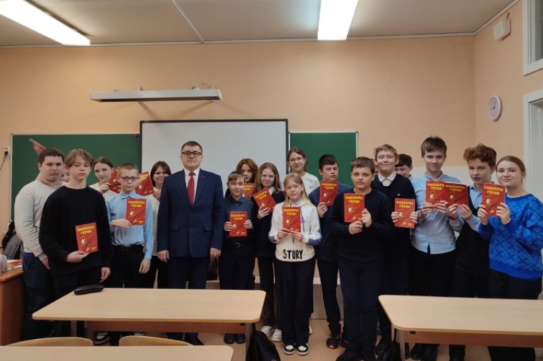 Зашел разговор и о главном празднике для россиян – Дне Победы. М. Савин подарил ребятам брошюры о подвигах пионеров-героев, о которых они, наверное, услышали впервые. У депутата появилась идея провести отдельное занятие по этой теме.