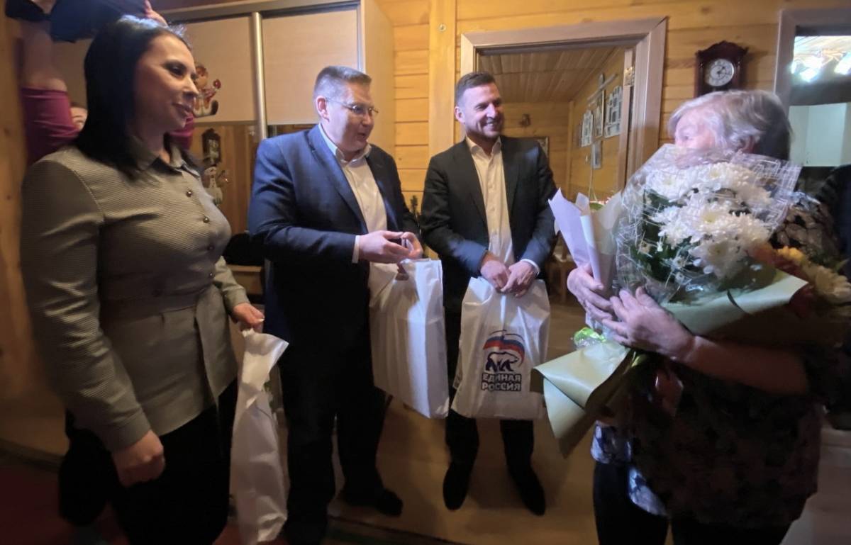 Секретарь местного отделения партии Советского района Нижнего Новгорода, депутат Законодательного собрания Нижегородской области Юрий Балашов поздравил, передал цветы и подарки блокаднице Людмиле Ивановне Лебедевой .