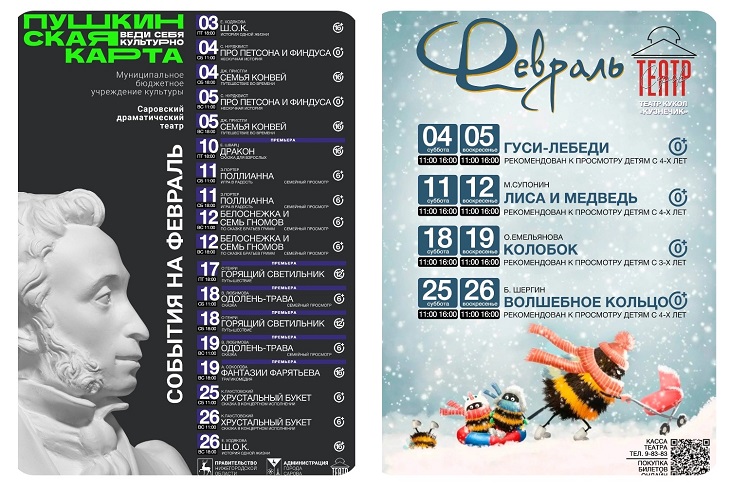 Саровский драмтеатр и Театр кукол «Кузнечик» подготовили для саровчан афиши на февраль.