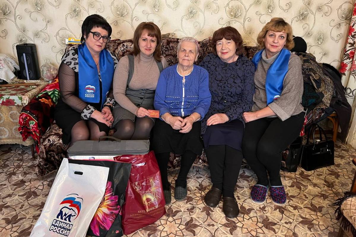 Представители местного отделения партии «Единая Россия» Ирина Пучкова и Вера Гузнова пришли поздравить Зинаиду Федоровну с Днем воинской славы России, вручили ей подарки со словами благодарности и пожеланиями здоровья и долгих лет жизни