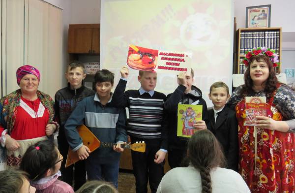 Ведущий библиотекарь Олисова А.В. провела обзор книжной выставки «Масленница блинница, весны именинница».