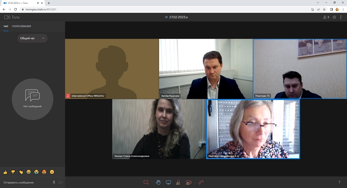 Ранее ННГАСУ заключил соглашение с Университетом Тишрин в городе Латакия. Сейчас прорабатывается ряд двусторонних инициатив по увеличению количества партнерских организаций в Сирии. Кроме того, 27 февраля прошло онлайн-совещание представителей ННГАСУ и руководства представительства Россотрудничества в Сирии, оказывающего широкое практическое содействие и всестороннюю конструктивную поддержку вузу. Участники обсудили вопросы обучения граждан Сирии в Нижегородском государственном архитектурно-строительном университете на подготовительном отделении и по программам высшего образования. Вуз представляли проректор по учебной работе Алексей Гордин, директор Центра академического сопровождения иностранных граждан Елена Белоус и директор Центра международного сотрудничества Артем Краснов, а Россотрудничество в Сирии — руководитель отдела образования Виктория Аль-Ахмед.