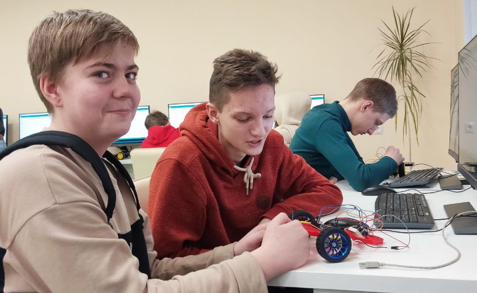На практикуме по робототехнике в Центре цифровых технологий школьники изучили принципы работы блока с фоторезистором и способ встраивания в управляющую программу необходимого кода. Под руководством наставников Алексея Ёмкина, Даниила Кротова и Дамира Усманова, студентов СарФТИ НИЯУ МИФИ, они собрали и настроили «светолюбивых» ботов. При ярком свете изделия активно двигались по маршруту, но, попав в тень, автоматически останавливались. Схема робота достаточно проста, но хорошо демонстрирует особенности написания кода для микроконтроллера Arduino.