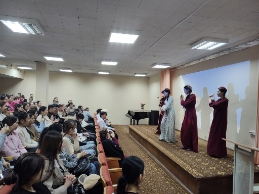 Яркие национальные наряды студентов-туркменов, исполняющих народные танцы «Кушделди» и «Туркменистан», создавали атмосферу праздника. Их исполнение сопровождалось видеороликами с прекрасными природными пейзажами Туркменистана, что добавляло эксклюзивности и визуальной привлекательности мероприятию. Зрители не только насладились танцами, но и погрузились в атмосферу родного языка, слушая стихи и песни на туркменском языке.