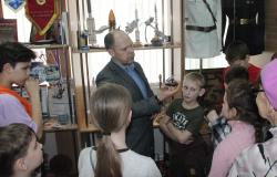 Владимир Трифонов провел ребятам экскурсию по музею саровской полиции, рассказав об истории создания в поселке «С» отделения №10 МВД СССР. Гостям были представлены экспонаты с мест раскопок на полях сражений Великой Отечественной Войны (текстолитовый медальон, посуда, котелки), боевое оружие тех времен, специальная техника, состоящая на вооружении милиции в 60-80 годы - радиостанция «ВИОЛА», устройство фиксации скорости автотранспорта «Барьер». Ребята увидели изъятые поддельные денежные купюры и холодное оружие. Есть тут произведения искусства, боевые знамена, обмундирование разных лет и предметы, относящиеся к категории раритетов. Особый интерес вызвала экспозиция, посвященная первому начальнику саровской милиции И.П. Уткину – орденские книжки, фотографии и другое.