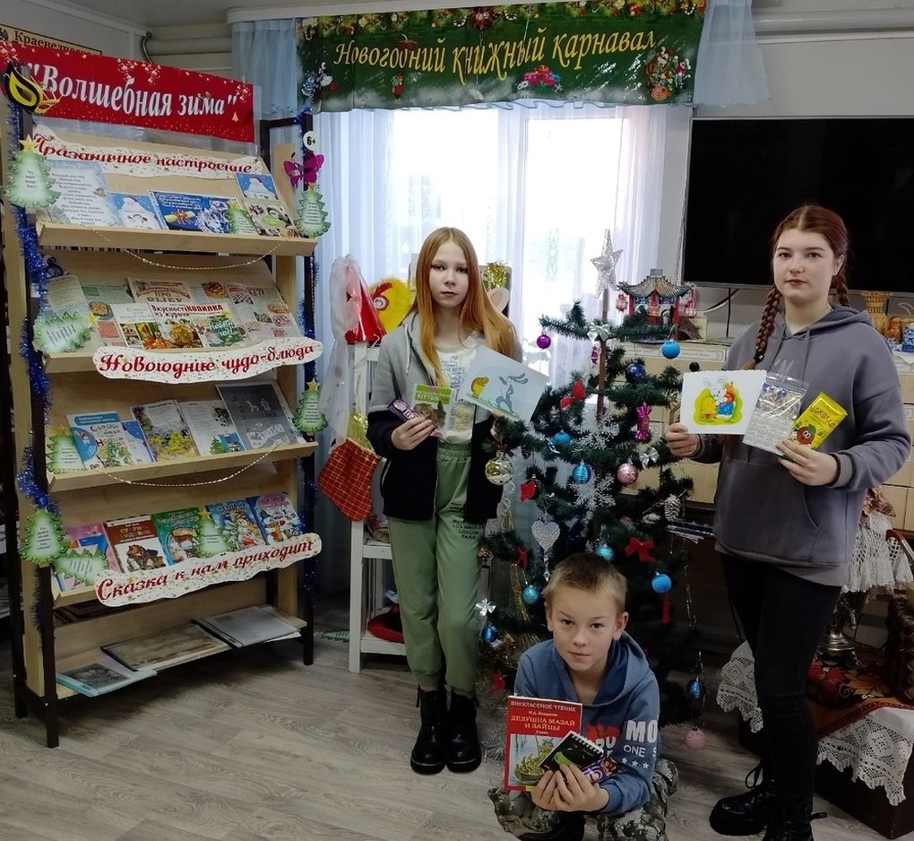 Ребят ждали увлекательные литературно-игровые программы «Рождество и Новый год ждут ребят у ворот», рождественские встречи в клубах по интересам «В ожидании Рождественского чуда», мастер – классы «Лучшая игрушка на елку», «Рождественский сюрприз», «Рождественский ангел», интересные новогодние викторины и загадки «Новогодняя мозаика», организованные у тематических книжных выставок, святочные посиделки «Только нам с тобой, дружок, не уснуть в сочельник», прошли комментированные чтения «Льются звуки жизни, счастья и добра, озаряя мысли светом Рождества» по произведениям классической русской и краеведческой литературы, беседы «Зимние праздники – традиции, обычаи, обряды». Дети с удовольствием посетили «Новогодний мультсалон», «Мультпарад в библиотеке», где демонстрировался видеопоказ новогодних мультфильмов, детских фильмов про Новый год и Рождество.