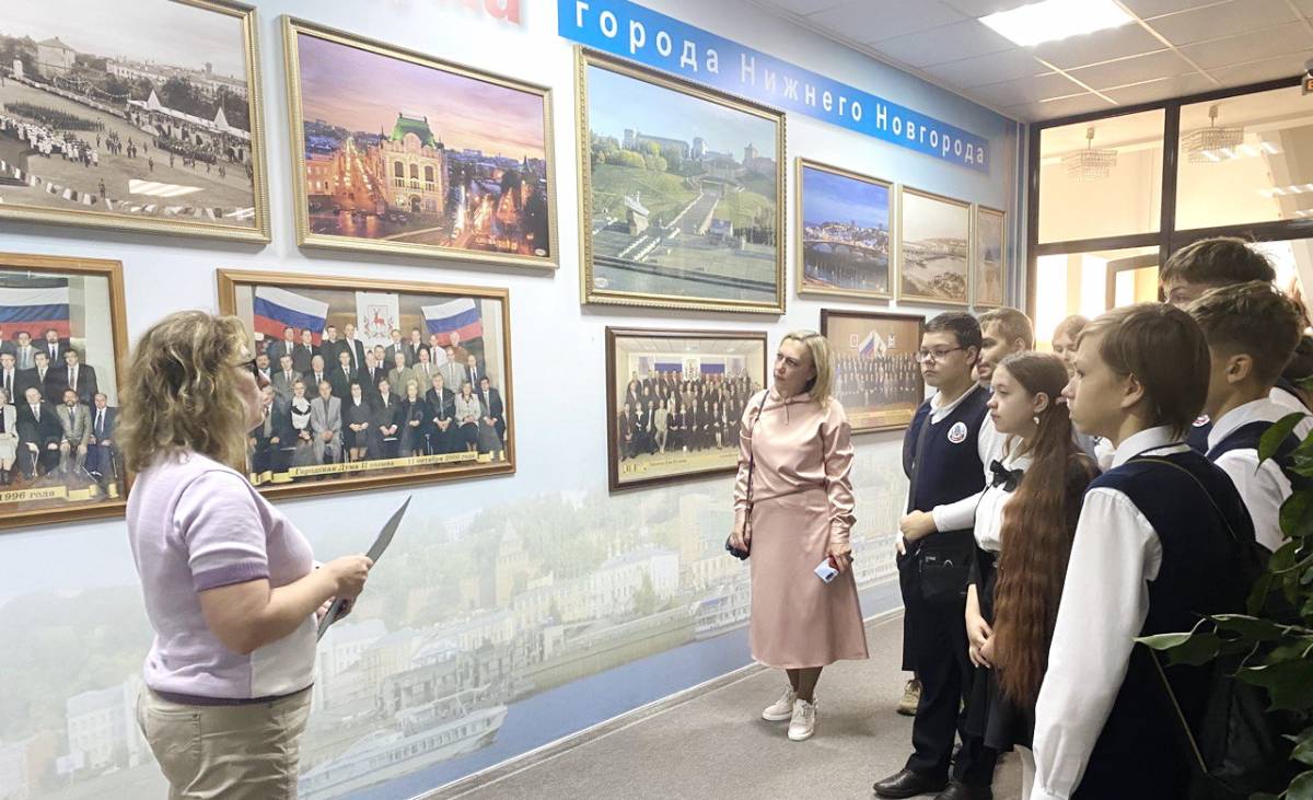 Учащиеся 8-го и 10-го классов оказались в стенах городской Думы. Сотрудники аппарата городской Думы рассказали ребятам об истории Дома советов, о системе местного самоуправления и структуре городской Думы, о деятельности депутатов и постоянных комиссий. Школьники побывали в зале заседаний и зале приема официальных делегаций, а также в приемной председателя городской Думы. В зале заседаний участники экскурсии смогли почувствовать себя настоящими депутатами, проголосовав по одному из вопросов. Кроме того, юные нижегородцы задали сотрудникам Думы вопросы. Ребят, в частности, интересовало, как в городе идет ремонт трамвайных путей и в чем заключается принятие имущества в муниципальную собственность.