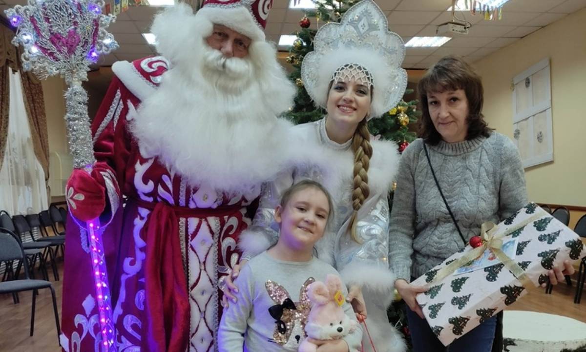 Ноутбук, сладкий подарок и мягкую игрушку – символ наступившего года Полине и ее маме, Елене Витальевне , передали Дед Мороз с внучкой Снегурочкой.