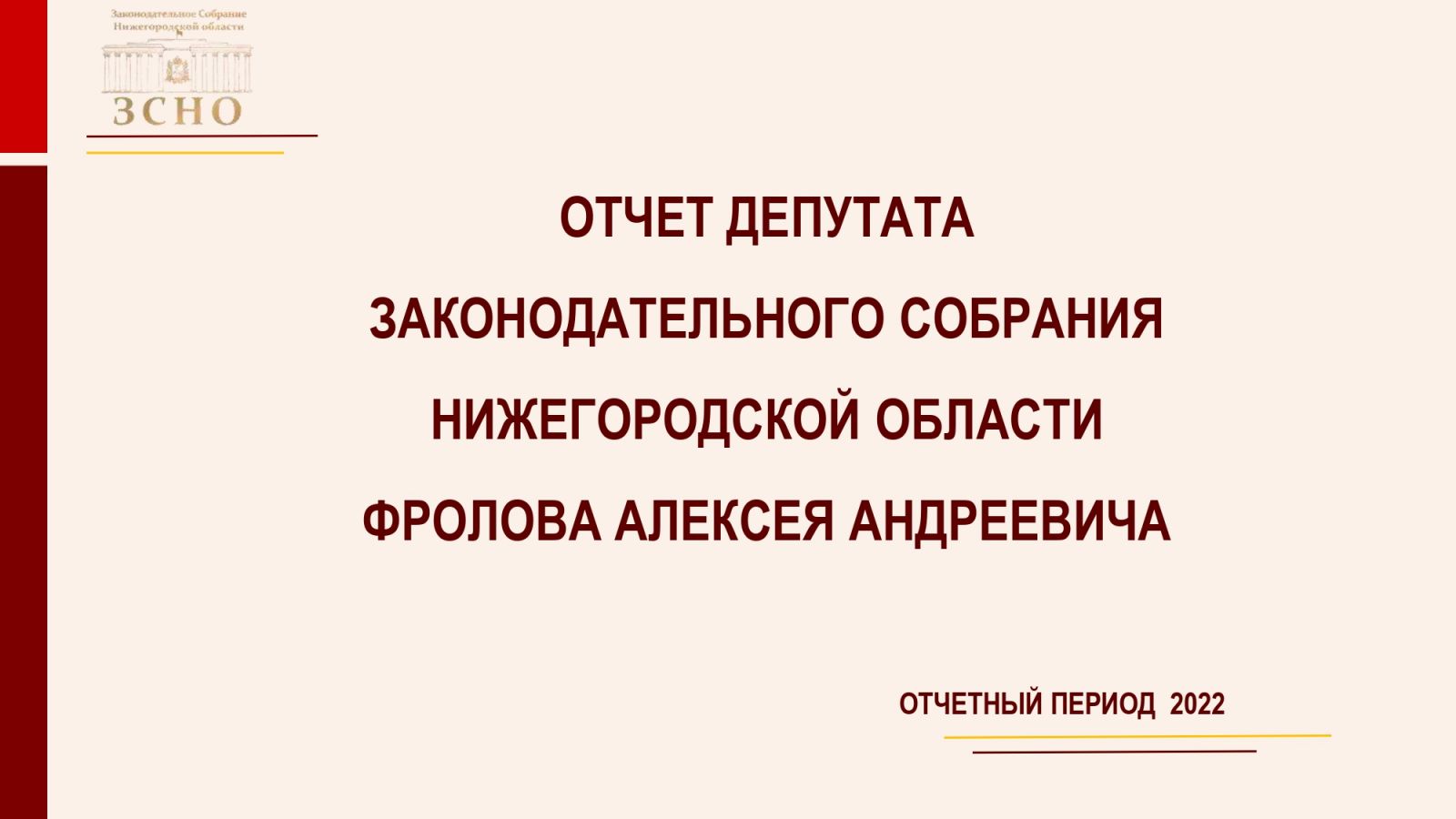 Ежегодный отчет о проделанной работе за 2022 год Алексея Фролова , депутата Законодательного Собрания Нижегородской области