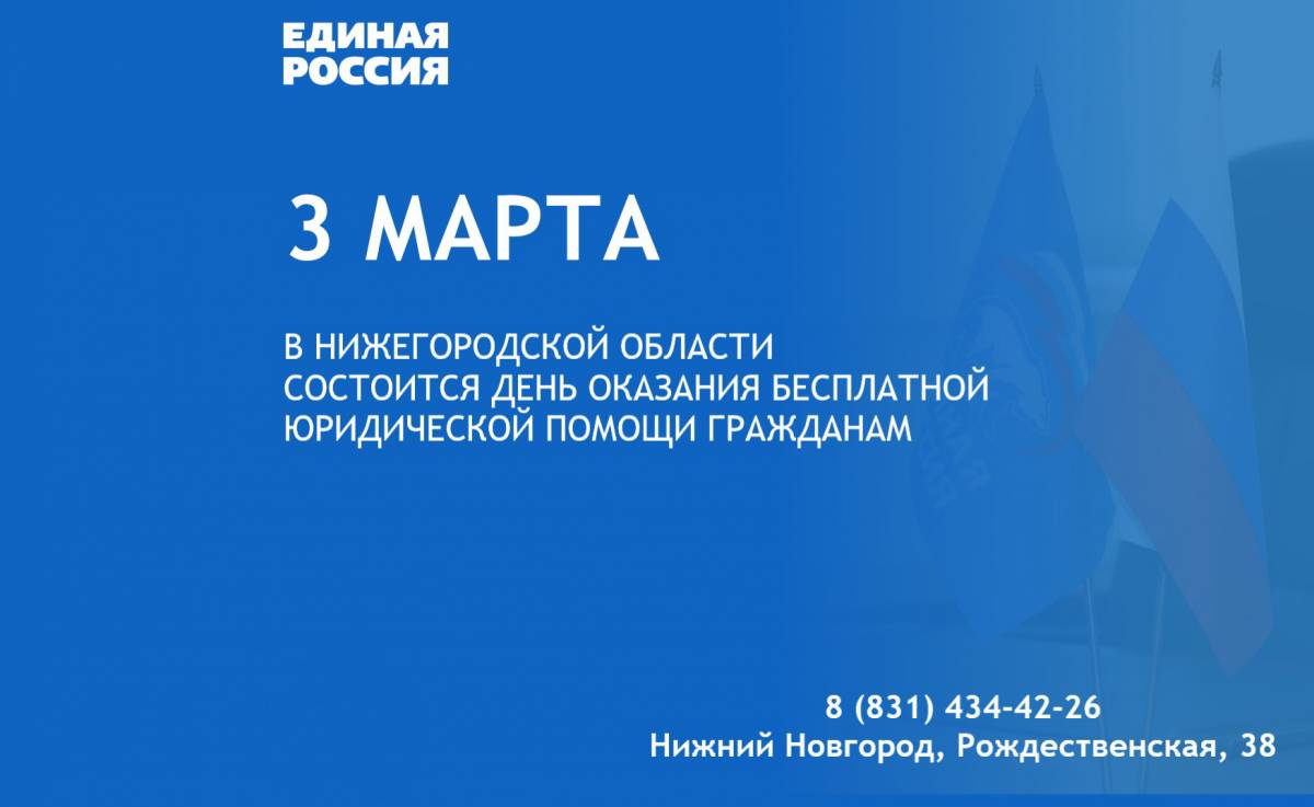 3 марта на площадке региональной общественной приемной партии «Единая Россия» состоится День оказания бесплатной юридической помощи гражданам.