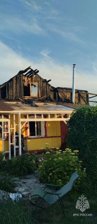 Информация о пожаре поступила в 18:05, а через 45 минут была объявлена ликвидация открытого горения. Огонь повредил кровлю дома, бани и гаража на площади около 133 кв. м. Погибших и пострадавших нет.