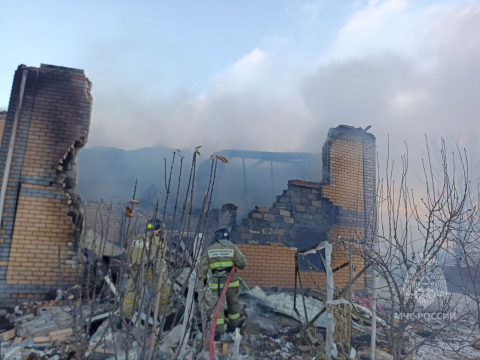 Сообщение о происшествии поступило в 08:50. Очевидцы сообщили, что горит частный дом в селе Вязовка. Когда на место прибыли пожарные, здание уже было полностью объято огнем, а одна из его стен обрушилась.