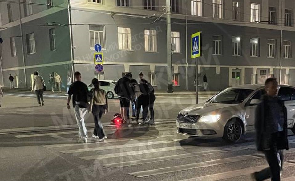 Водитель автомобиля Scoda сбил самокатчика на площади Горького в Нижнем Новгороде вечером 3 сентября.