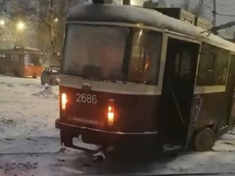Трамвай сошел с рельсов после ДТП с такси на Сормовском шоссе