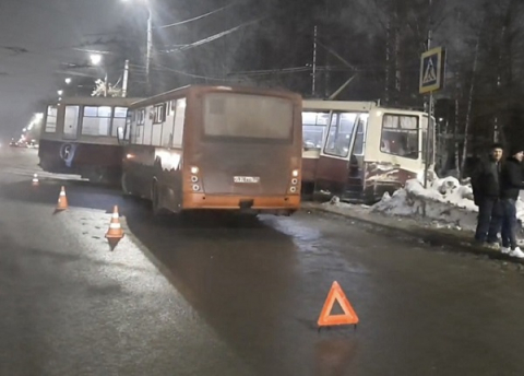 Автобус частного перевозчика столкнулся с трамваем в Нижнем Новгороде 9 февраля.