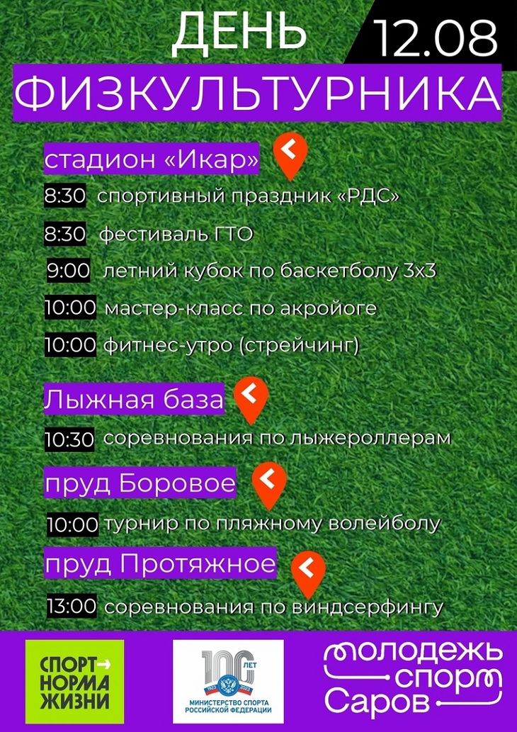 12 августа Саров отметит День физкультурника. В этот день для горожан приготовлена обширная спортивная и развлекательная программа.