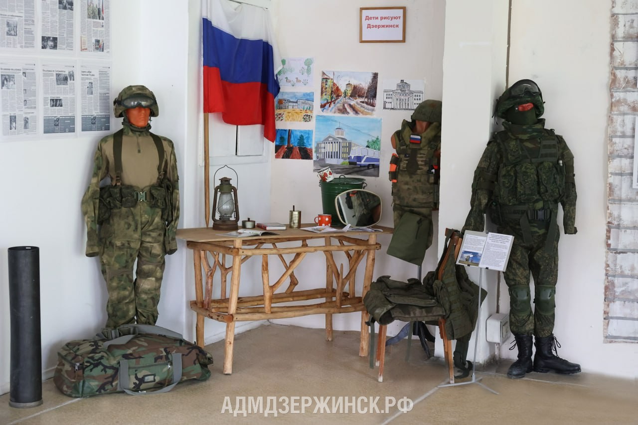 27 мая, в День города, в Дзержинске была открыта экспозиция, посвященная специальной военной операции. Она разместилась в Музее боевой славы в Доме книги на базе фотовыставки «Донбасс. Вчера и сегодня», которая была открыта в начале года. Экспозиция объединяет элементы обмундирования и снаряжения российских военнослужащих, трофеи, добытые ими в зоне СВО, а также вещи, которые отправляют из Дзержинска в качестве гуманитарной помощи. Первым посетителем экспозиции стал глава города Дзержинска Иван Носков совместно с депутатом городской Думы Александром Терентьевым.