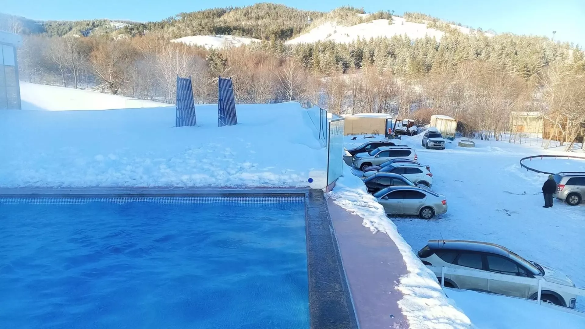 Горячий бассейн под открытым небом здесь огромный — занимает целых 300 квадратных метров. В будни его можно посетить за 1700 рублей (два часа 20 минут), а в выходные — за 2000 рублей с одного человека.