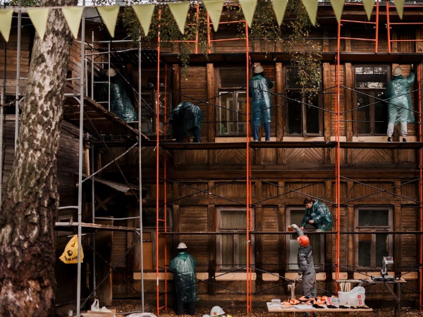 Реконструкция двухэтажного здания на улице Короленко, 17 стартовала в 2022 году. Тогда волонтеры привели в порядок центральный и боковой фасады дома, а внутри организовали выставку, посвященную писателю Владимиру Короленко. В этом году работы продолжились.