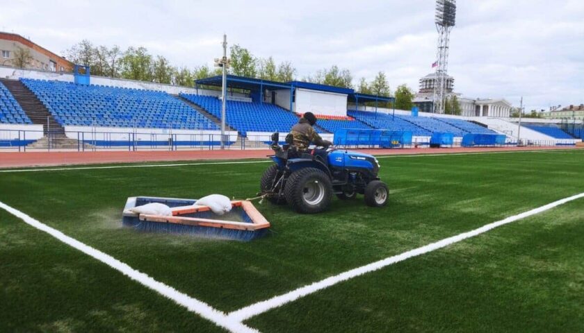 С середины апреля на центральной спортивной арене в Дзержинске ведутся работы по замене искусственного футбольного покрытия площадью почти 8000 квадратных метров.