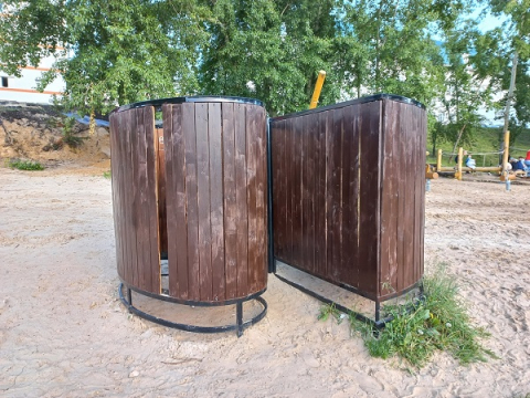 На пляже сломаны качели, кабинки для переодевания и волейбольная площадка, которую неоднократно приходилось восстанавливать из-за действий вандалов. Песочница, часть бревен которой превратилась в щепки, на данный момент представляет опасность для детей.