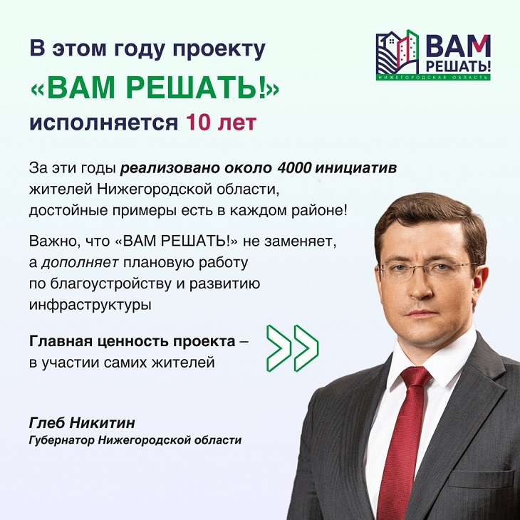 Жители Нижегородской области смогут предложить свои идеи для проекта «ВАМ РЕШАТЬ!»