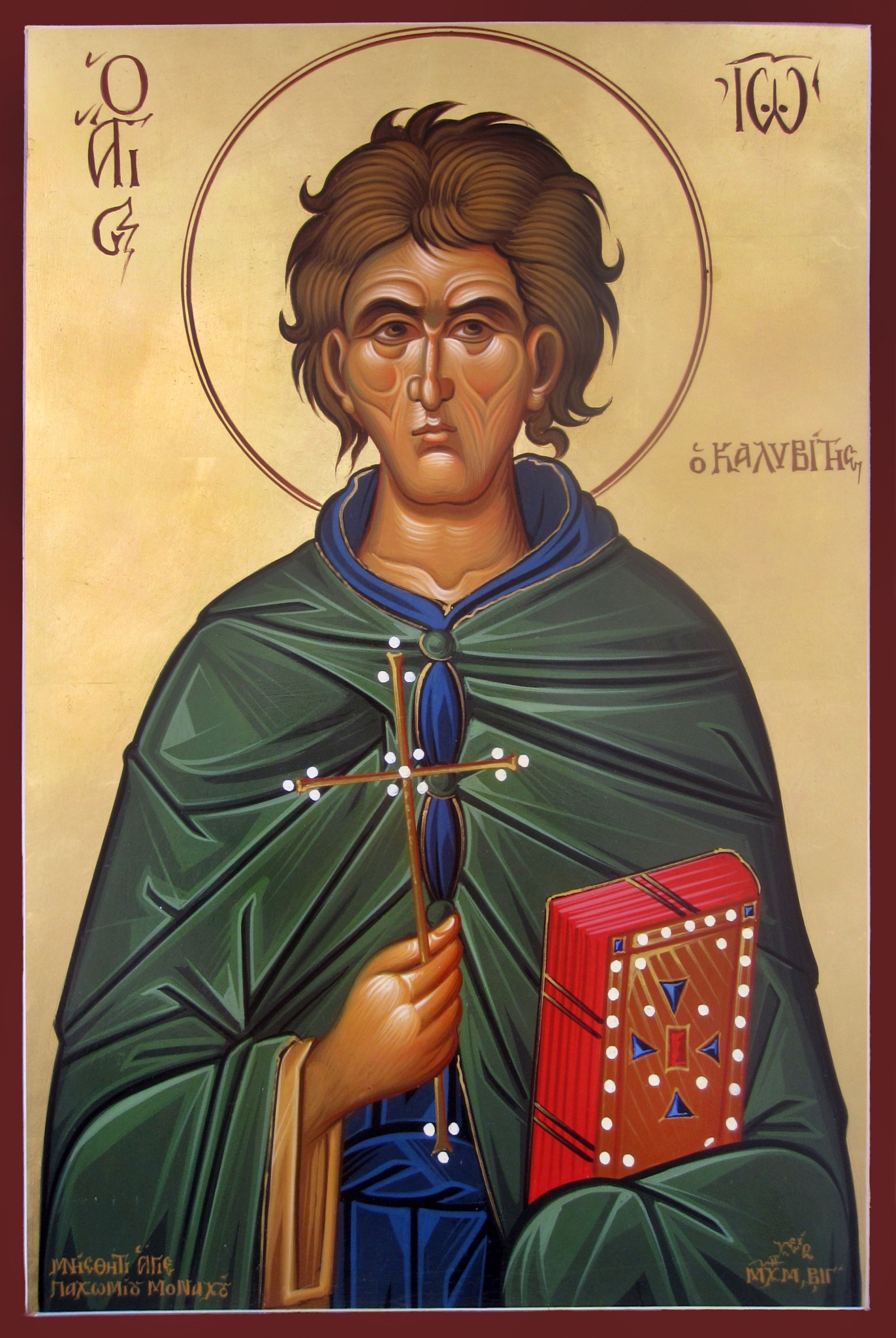 Возлюби́в, прему́дре, нищету́ неокра́дому,/ роди́телей твои́х бога́тство возненави́дел еси́/ и, Ева́нгелие в рука́х твои́х держа́,/ после́довал еси́ Христу́ Бо́гу, Иоа́нне,// моля́ся непреста́нно о всех нас.