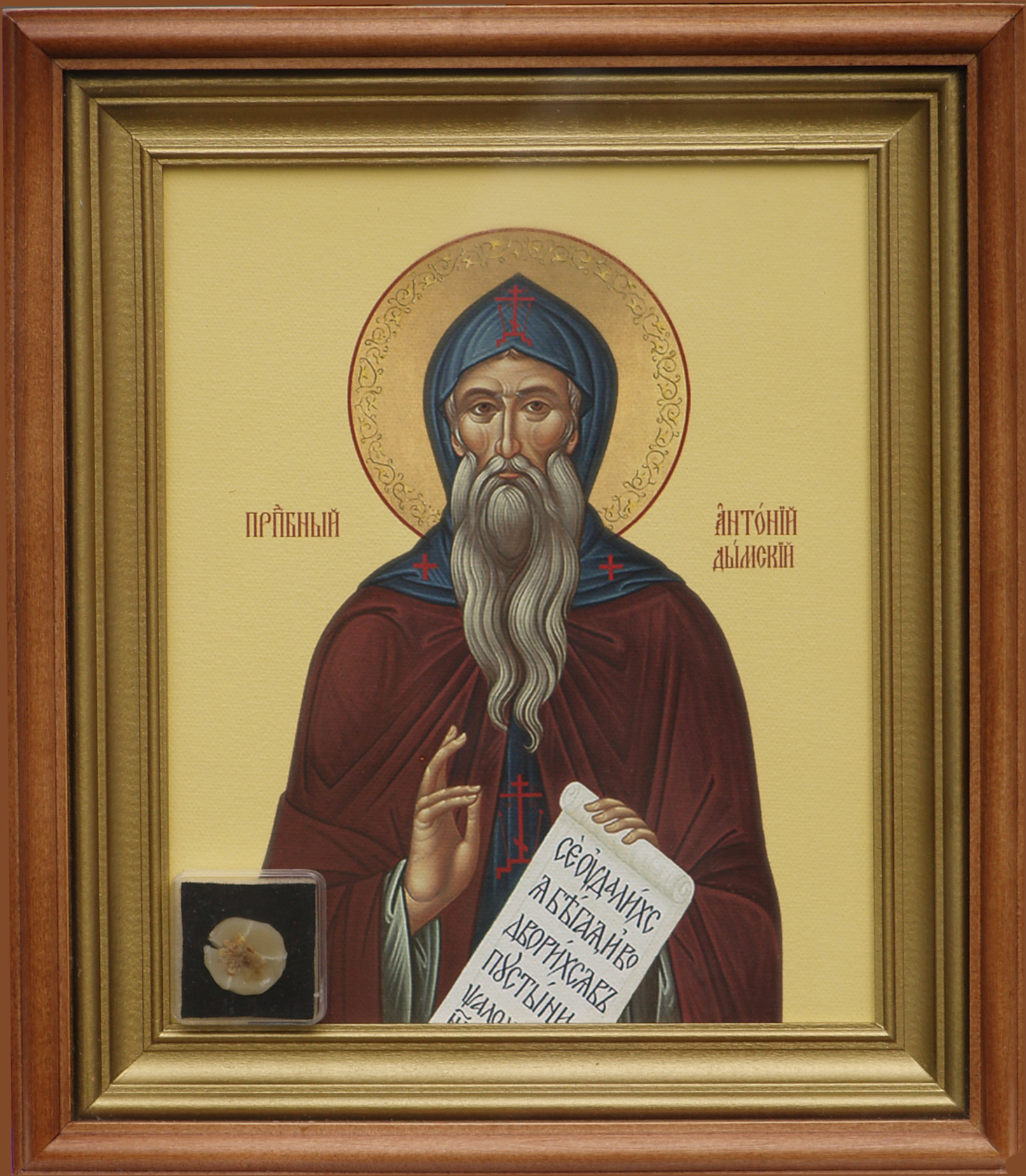 Преподобный Антоний Дымский родился в Новгороде около 1157 года. Услышав однажды в церкви слова Христовы «Аще кто хочет по Мне итти, да отвержется себе и возмет крест свой и по Мне грядет» (Мф. 16, 24), он решился оставить мир и принял монашеский постриг от святого Варлаама Хутынского (память 6 ноября) в его обители. Умирая, преподобный Варлаам поставил святого Антония настоятелем вместо себя, но Антоний, избегая славы, удалился из обители и поселился на берегу Дымного озера, в окрестностях города Тихвина. Здесь он основал монастырь и подвизался в нем до конца жизни. По преданию, преподобный Антоний совершил путешествие в Константинополь и по Святым местам. Скончался преподобный Антоний в 1224 году 24 июня (в этот день совершается память). В 1330 году его мощи обретены были нетленными, и с того времени прославлены многими чудесами.