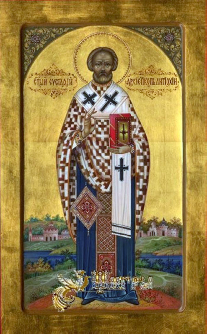 Святитель Евстафий, архиепископ Антиохийский (323–331) родился в Сиде Памфилийском во второй половине III века. Он был епископом г. Берии, пользовался любовью и уважением народа и по ходатайству паствы был возведен отцами I Вселенского Собора (325) на Антиохийскую кафедру.