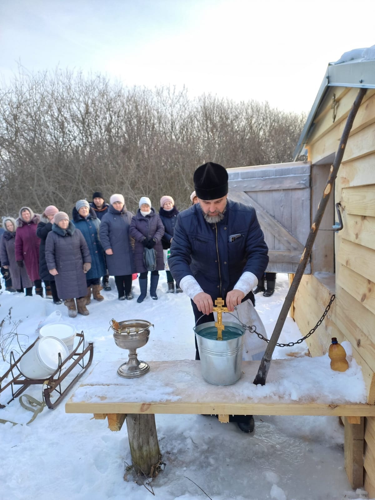 18 января 2023г. На источнике в Большом Маресьеве благочинный Лукояновского района иерей Борис ясеменчев совершил чин Великого освящения воды.