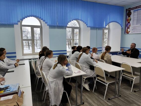 Сегодня настоятель храма Казанской иконы Божией Матери иерей Сергий Данилов посетил Арзамасский медицинский колледж, где провел беседу с первокурсницами обучающимися на отделении сестер милосердия.