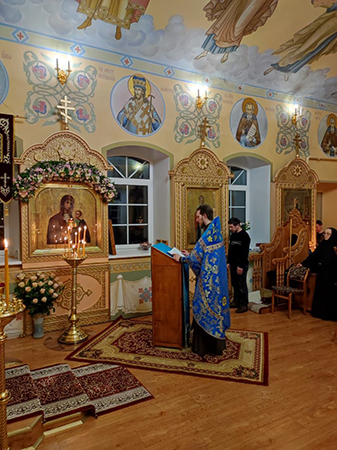 В престольный праздник здесь были отслужены всенощное бдение, молебный канон Пресвятой Богородице с водосвятным молебном и Божественная литургия, после которой священнослужители и сестры прошли крестным ходом вокруг храма.