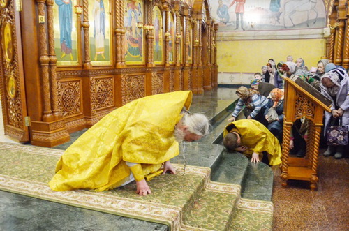 По сегодняшнему Евангельскому чтению “если вы будете прощать людям согрешения их, то простит и вам Отец ваш Небесный” – это значит. что если вы хотите, чтобы Бог простил вам ваши грехи, простите вы сначала тех, кто вас обидел. Не держите зла, как бы тяжело это ни было. Когда Христа распинали, Он сказал: “Отче! прости им, ибо не ведают, что творят”, а нас то не распинают. Сегодня тот день, когда мы обязаны принести своё искреннее покаяние друг перед другом, и я, как ваш настоятель, хочу попросить у вас прощения!”- и отец Александр сделал перед всеми земной поклон.
