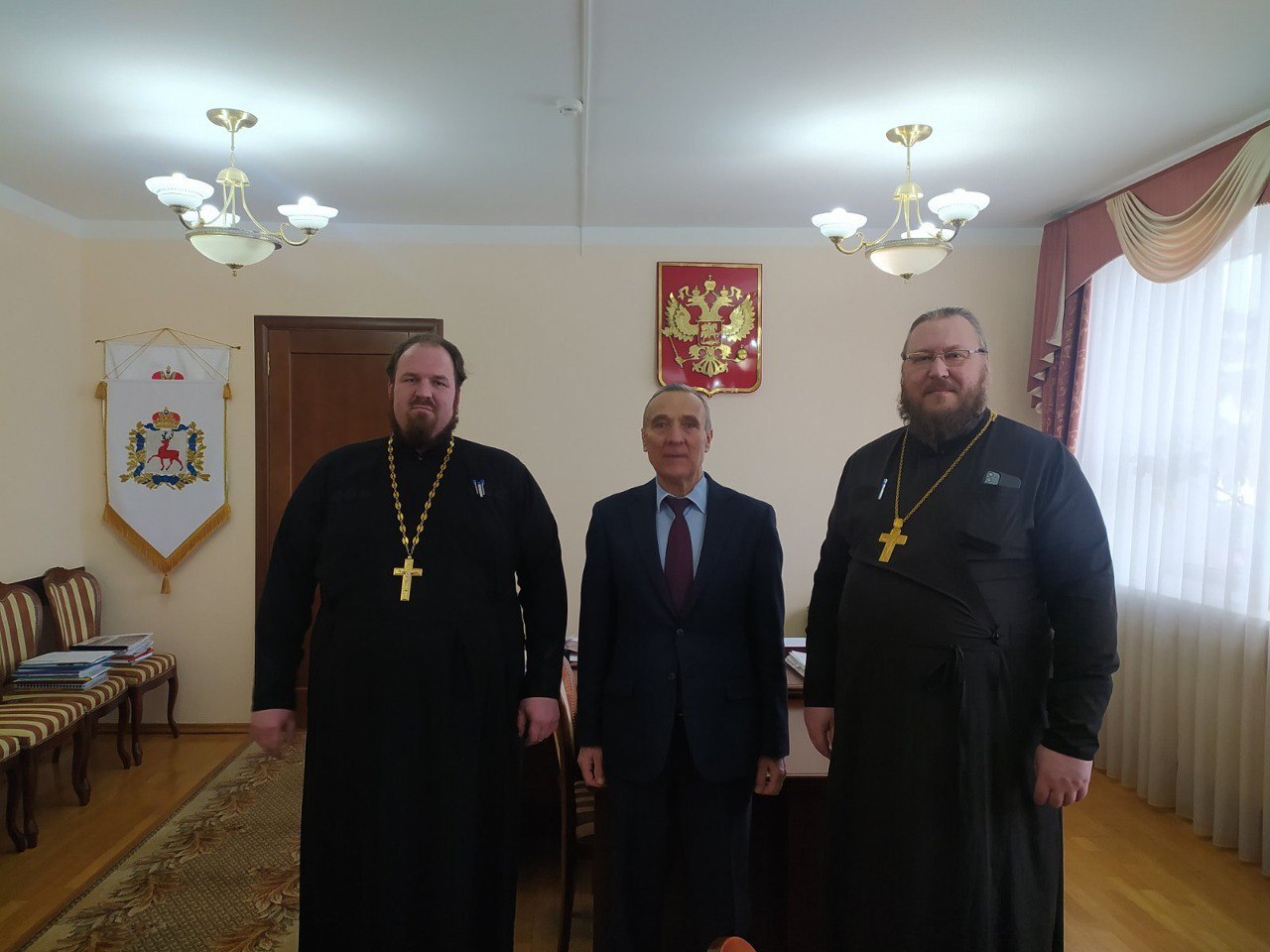 17 февраля 2023 года в Администрации Павловского муниципального округа состоялась рабочая встреча председателя совета депутатов Виктора Куренкова с секретарем Выксунский епархии протоиереем Димитрием Ивиным и благочинным