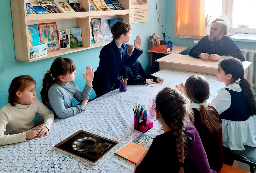7 февраля в детской воскресной школе села Мотовилово прошел урок, посвященный празднику Сретения Господня. Его провел духовник школы протоиерей Лев Бушуев.