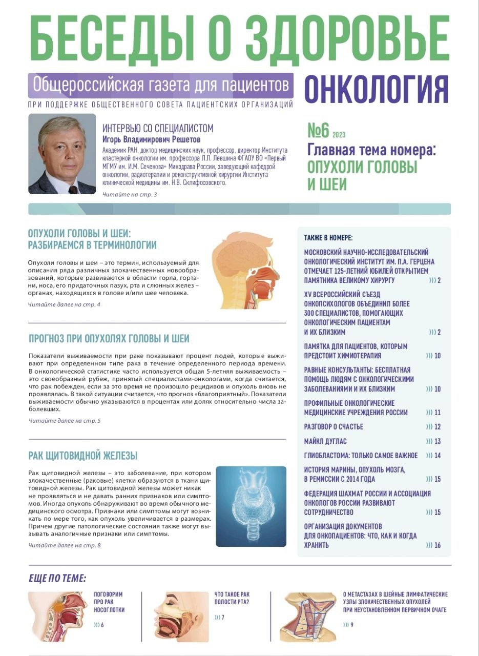 Предлагаем вашему вниманию свежий номер общероссийской газеты для пациентов «БЕСЕДЫ О ЗДОРОВЬЕ. ОНКОЛОГИЯ»!