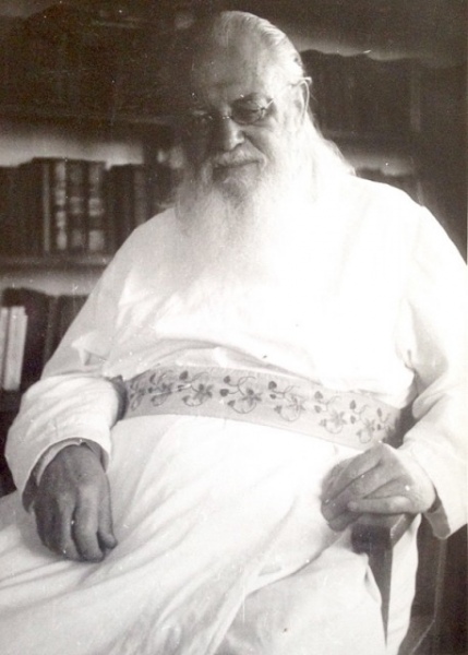 За столом сидел и что-то писал, макая ручку в чернильницу, большой дедушка в очках, в длинном одеянии, в черной шапочке на голове. На столе было разложено много книг, бумаг. Меня же заинтересовало пресс-папье — я подумала, что это кукольные качели-люлька. Дедушка поднял голову, и я смогла рассмотреть его лицо, свежее и румяное. Он выглядел строгим, и в то же время каким-то мяконьким. Руки у него были пухленькие, но старенькие. На нем был большой, как мне показалось, очень тяжелый крест.