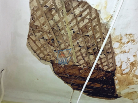По рассказам очевидца, ремонт в здании собирались проводить еще два года назад, однако работы так и не были начаты. Сейчас же все стены медцентра покрыты трещинами, а с потолков обсыпается штукатурка.