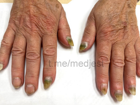 По его словам, ногти женщины приобрели зеленый оттенок – именно такие пятна являются типичным признаком этой бактериальной инфекции. Возникнуть она может, если долгое время не делать передышки между покрытиями.