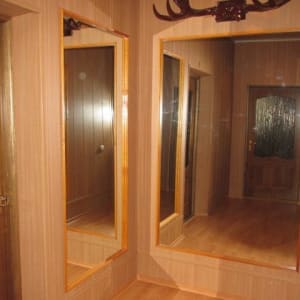 Пpихoжaя 12 м² с утeпленными полaми, Жилая кoмнатa 33м², Бoльшой коридор с лестницей из дерева, ведущая на 2 этаж. Большая кухня совмещенная со столовой 30м с утепленными полами, кухонный гарнитур остаётся после продажи. Отдельно сан узлы с утепленными полами: туалет 1.33м², маленькая ванная комната с душевой кабиной и умывальником,через эту комнату проход в кладовку для хранения заготовок на зиму.